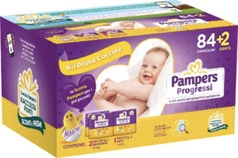 PANNOLINI PAMPERS PROGRESSI TRIO POE 86 PEZZI - 2 PACCHI TAGLIA 1 + 1 TAGLIA 2