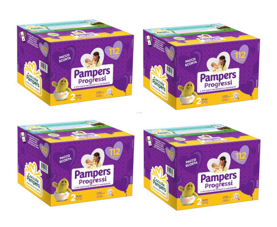PANNOLINI PAMPERS PROGRESSI QUADRIPACK - TAGLIA 2 MINI 112 PZ
