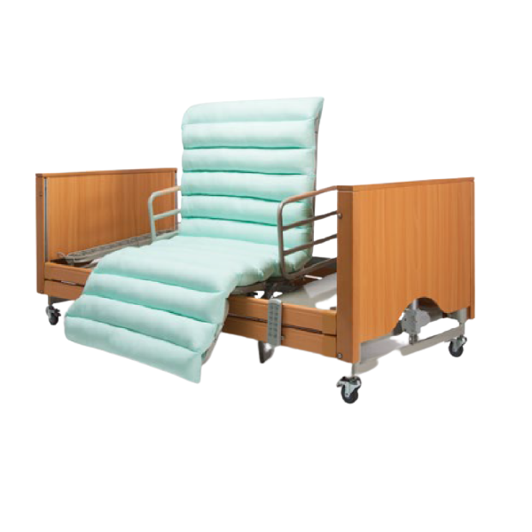 • Telaio rete: Struttura portante perimetrale in acciaio. Telo rete in grigliato elettrosaldato. Guide reggi materasso non asportabili. Dotato di due supporti per asta sollevamalato e asta porta flebo. Piano rete a 4 sezioni. Sezione alzatesta e sezione gambevregolabili a mezzo di due motori elettrici 24V DC. Sezione bacino fissa.